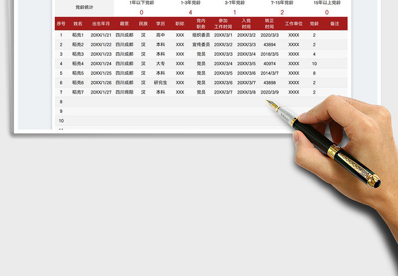 簡潔黨員花名冊模板包含