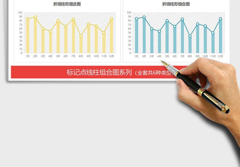2021年柱形圖-折線圖-平均線組合圖表(紅黃色)包含