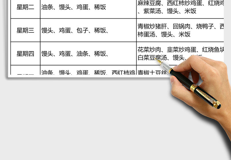 食堂每周菜譜模板excel表格模板包含