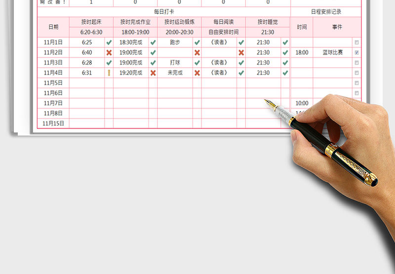 2021年每日學習生活運動目標打卡明細表包含