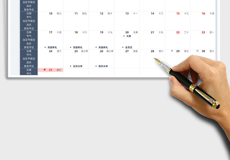 2021辛丑牛年全年營銷日歷多彩模板excel模板包含
