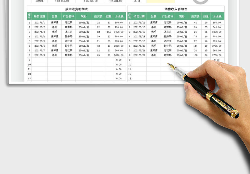 2021年產品收入成本明細表免費下載包含