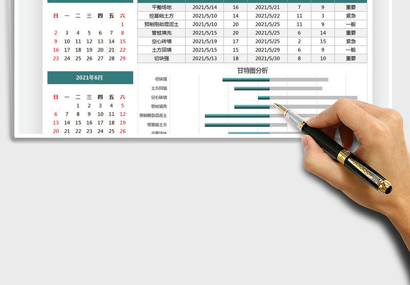 月份項目工程進度甘特圖excelExcel表格模板包含