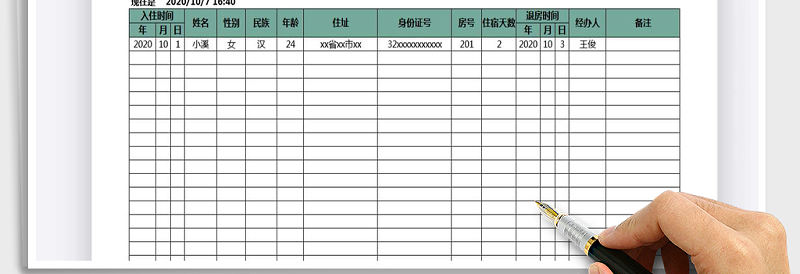 2021年旅客住宿登記表包含