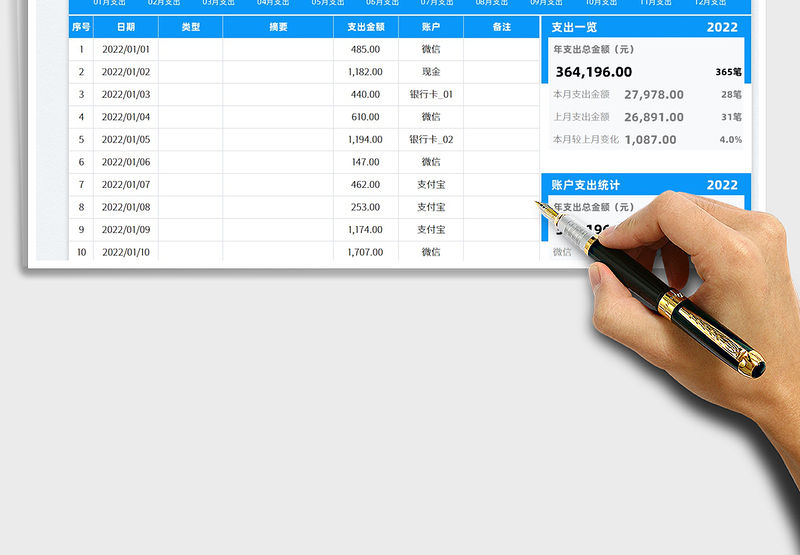2022個人收入支出記賬表免費下載包含