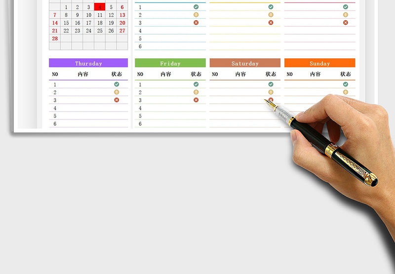 2021年周計劃安排表包含