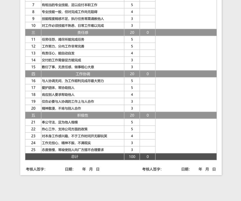 保安人員績效考核表包含