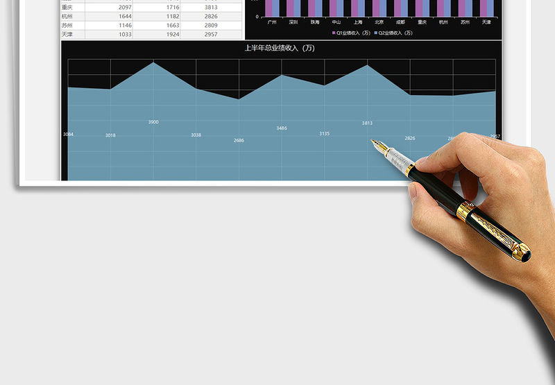 各地區(qū)業(yè)績季度對比圖表模板 Array
