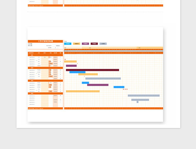 各個項目月份進度計劃表格甘特圖Excel模板包含