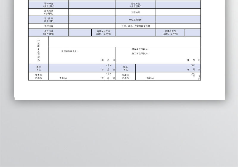 建筑工程開工報(bào)告,1920x1080:0DPI,EXCEL文檔,下載,EXCEL白色,免費(fèi)模板EXCEL格式,公司文檔,文件,合同,打印合同,電子文檔,EXCEL模板,商務(wù),商務(wù)文檔,簡潔大方,可編輯文檔,,,,工程開工報(bào)告 Array