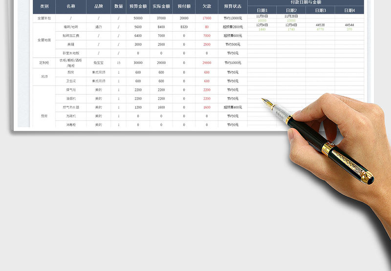 2022裝修預算表-硬裝篇免費下載包含