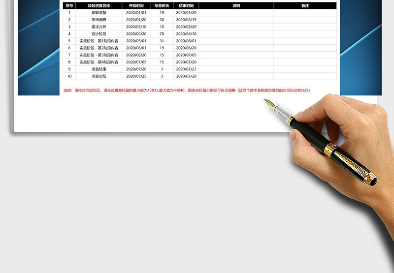計劃進度表-項目進度甘特圖Excel模板Excel表格模板包含