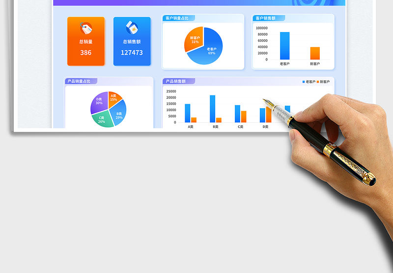 淺藍商務分組式高級銷售業績分析圖表包含