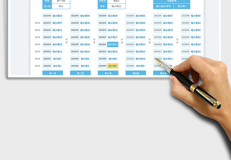 藍(lán)色簡(jiǎn)約可查詢位置座位表(自動(dòng)填充) Array