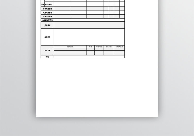 醫院行政總值班工作記錄表,1920x1080:0DPI,EXCEL文檔,下載,EXCEL白色,免費模板EXCEL格式,公司文檔,文件,合同,打印合同,電子文檔,EXCEL模板,商務,商務文檔,簡潔大方,可編輯文檔 Array