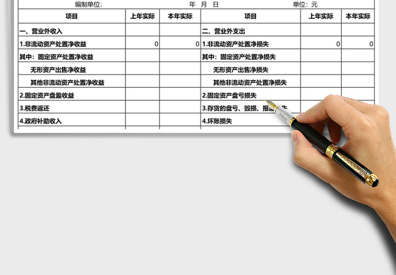 營(yíng)業(yè)外收支明細(xì)表excel模板