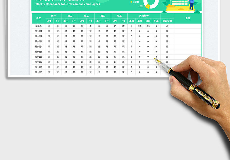 2021年公司員工考勤簽到表模板包含