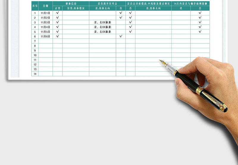 202114天健康信息記錄表-體溫登記表免費下載包含