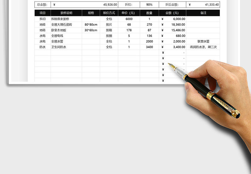 2021年房屋裝修預算表(通用各種面積房屋)包含