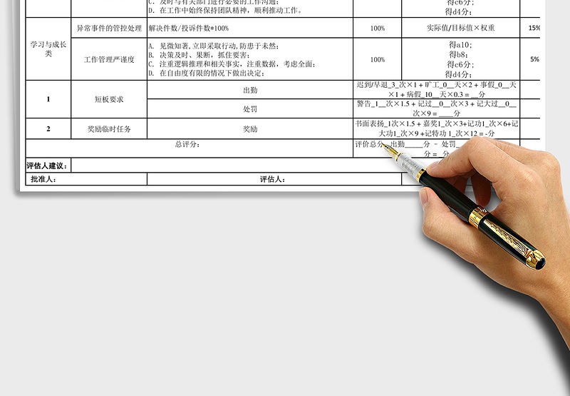 2021年部門經理及主管績效考核表(通用,自動計算、評價)包含