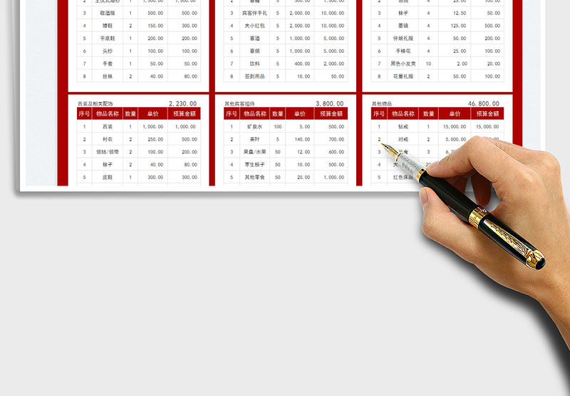 2022婚禮籌備預算詳情表Excel模板免費下載包含