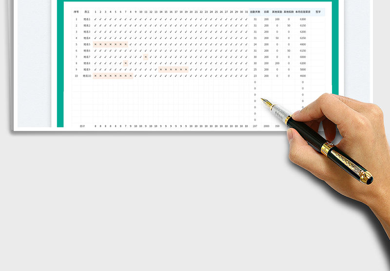 2022年員工月度考勤表標準模板(范本)免費下載包含