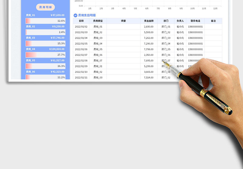 2022年費用支出明細表-自動統計匯總免費下載包含
