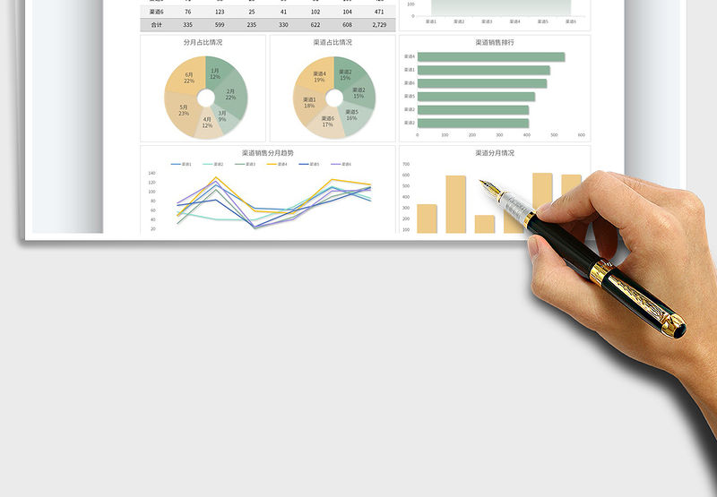 網點線上渠道銷售數據對比分析圖excel表格模板包含