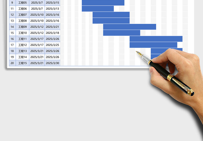 藍色項目進度甘特圖(自動進度條)excel模板Excel表格 Array