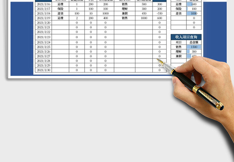 2021年收支記賬表-公式自動計算日期查詢匯總包含