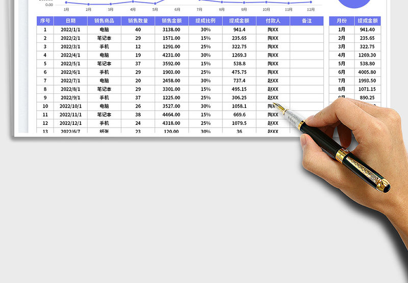 2022銷售提成記錄表-自動(dòng)統(tǒng)計(jì)免費(fèi)下載 Array