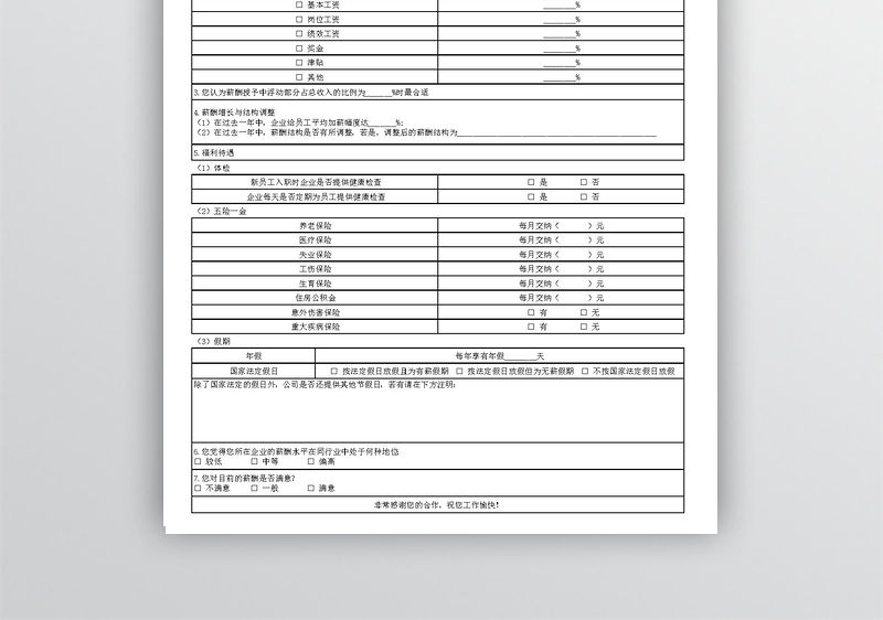 薪酬市場調(diào)查問卷表格