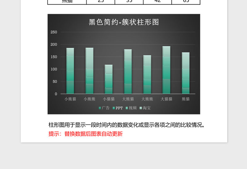 綠色員工業績統計堆積柱形圖Excel模板包含