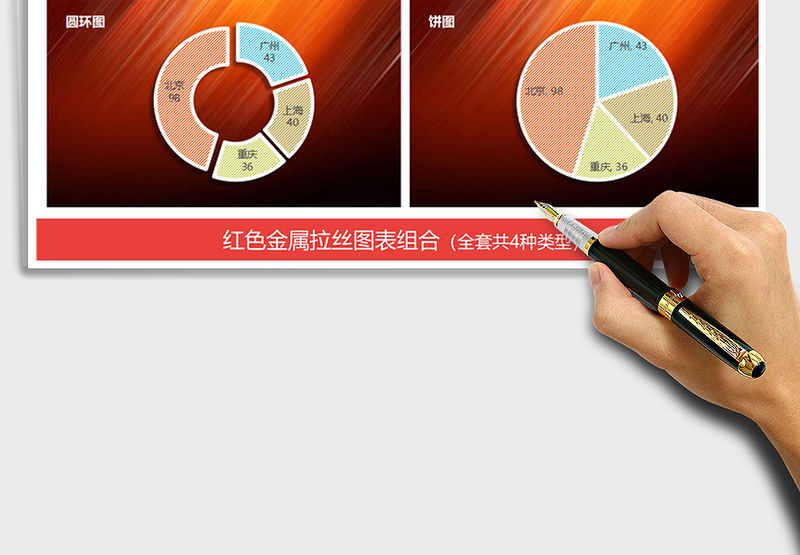 紅色金屬拉絲圖表 財務營銷報表 占比對比 Array
