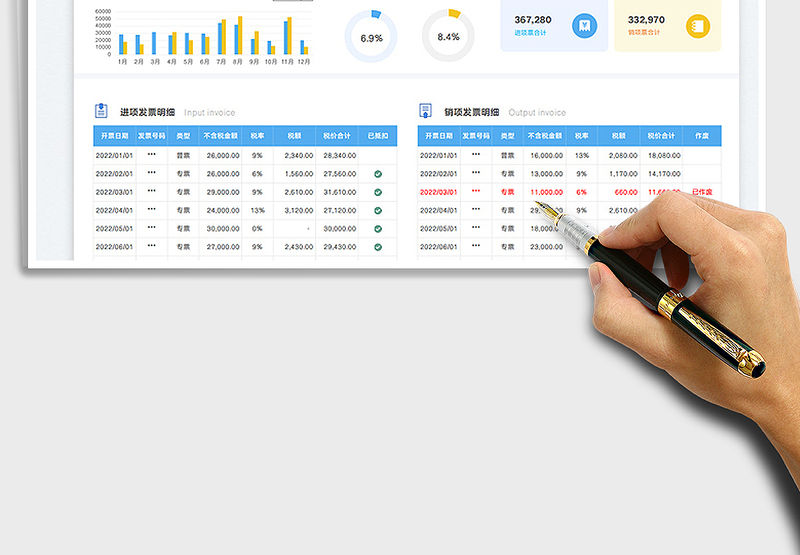2023月度稅金統計表-銷項進項稅費明細表免費下載包含