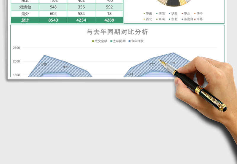 圖表模板銷售地域成交金額分析excel表格模板包含