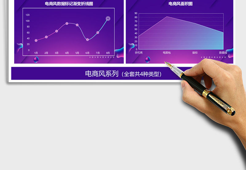 2021年紫色電商圖表模板柱形圖折線圖