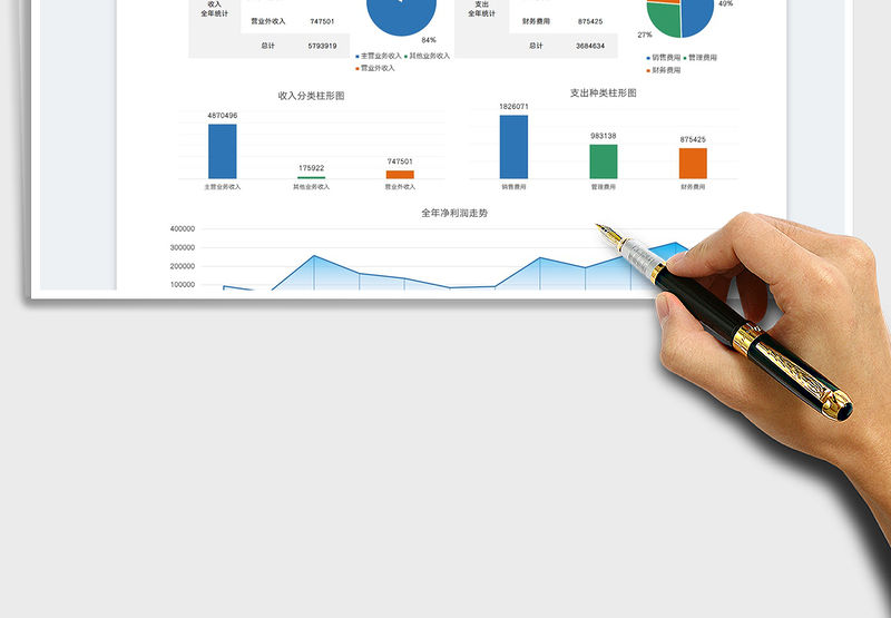 2022餐飲店收支管理表自動可視化餅圖免費下載包含