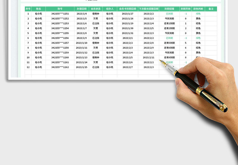 會(huì)員管理明細(xì)表-到期提醒免費(fèi)下載
