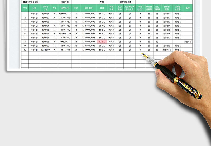 2022公司員工疫苗接種情況登記表免費下載包含