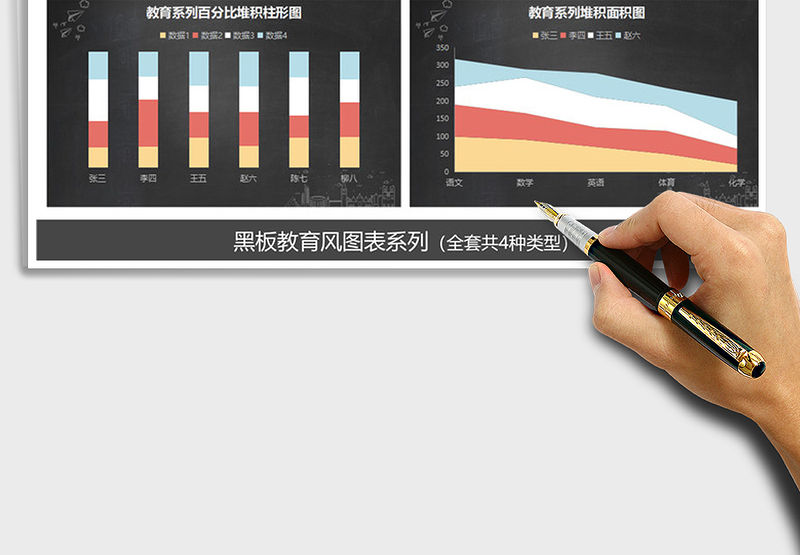 教育風黑板圖表折線圖餅圖面積圖 Array