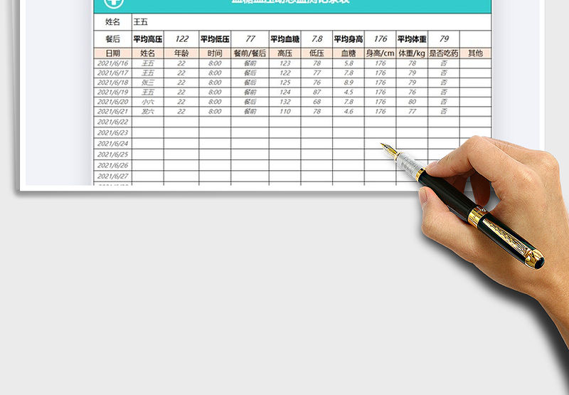 2022血壓血糖跟蹤記錄表免費下載包含