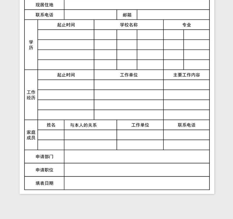新員工入職申請(qǐng)表 Array