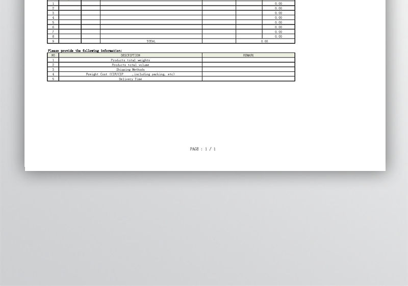 國際標準詢價單模板
