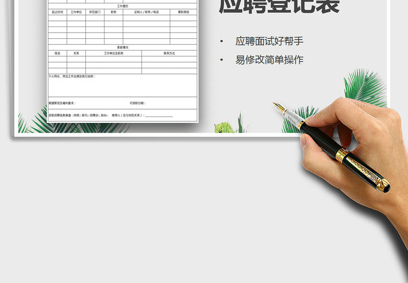 首頁 > Excel表格 > 登記表 > 2021年應聘人員登記表.XLSX 【圖片、文字、動畫均可編輯】