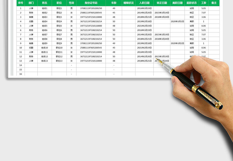 2021年人事信息登記表-自動提醒員工生日-多種公式計算包含