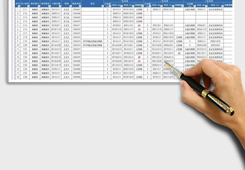 2021年員工勞動合同期限簽訂自動提醒表包含