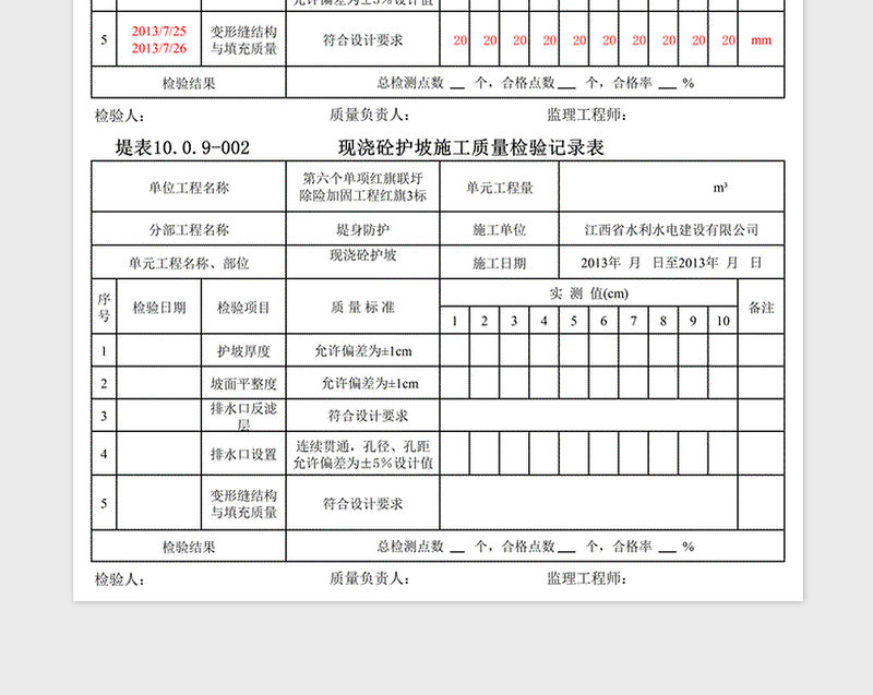 2022年現(xiàn)澆砼護(hù)坡質(zhì)量檢驗(yàn)記錄表免費(fèi)下載