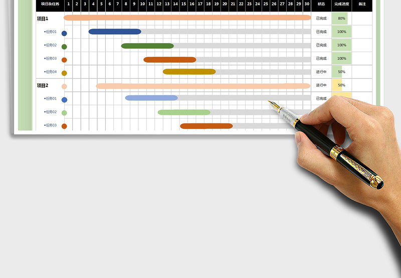 2021年甘特圖任務(wù)工作計劃(自動計算,可擴展,工作匯報)包含