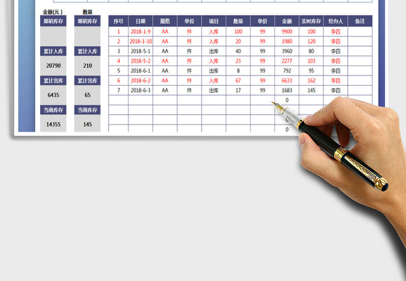 2021年商品出入庫登記表(自動統計)免費下載包含